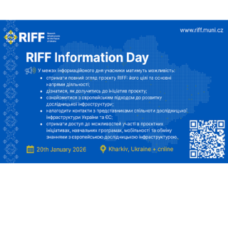 20 січня 2026 року у місті Харків відбудеться Інформаційний день проєкту RIFF (Research Infrastructure for Future). Проєкт RIFF спрямований на оновлення та модернізацію системи досліджень та інновацій (R&I) в Україні шляхом формування сучасного, перспективного...